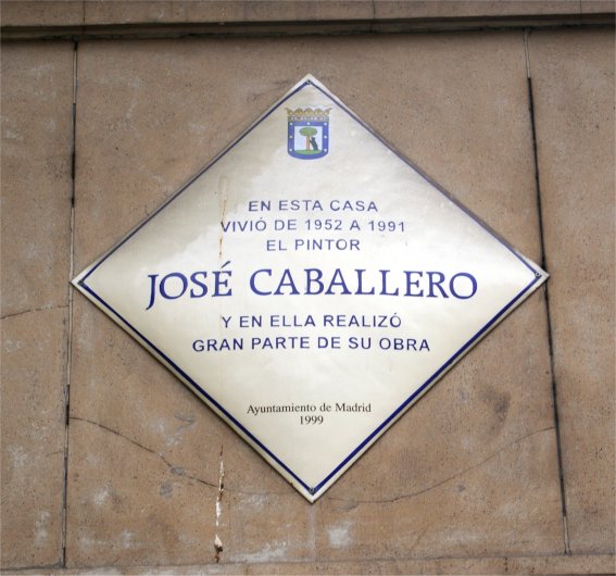 José Caballero, pintor afincado en Alcalá, en la cual murió y a la que dejó parte importante de su legado pictórico, cuenta por último con una placa conmemorativa -no tengo noticias de que le haya sido dedicada una calle- en lo que fuera su domicilio madrileño, el número 2 de la avenida de América.