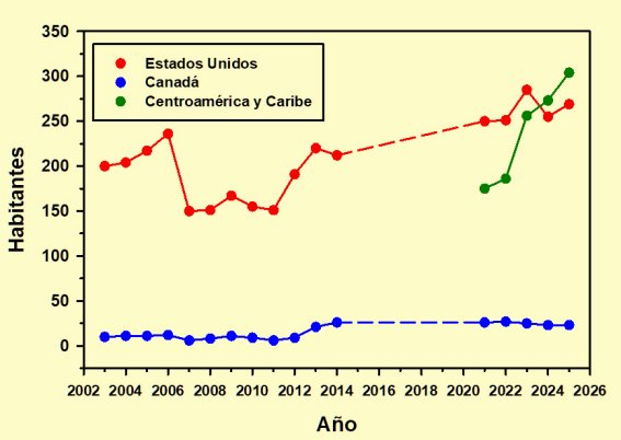 En lo que respecta a los Otros países de Centroamérica y el Caribe lo único que podemos comprobar es que en este último quinquenio han alcanzado en conjunto unos valores demográficos similares al estadounidense, siendo de lamentar que no se puedan detallar.