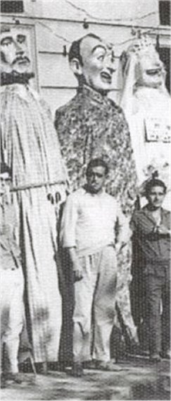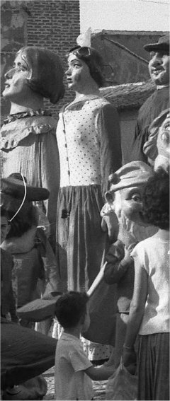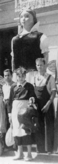 Abajo, la Bruja cabezudo y la Bruja gigante en los años