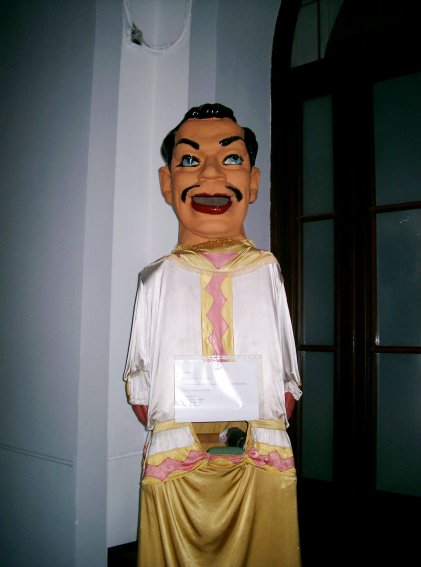 Como curiosidad, cabe reseñar que este Pinocho es el tercero que ha habido en Alcalá. El primero fue un gigante de los años sesenta que, como la mayoría de los de esa época, no perduró demasiado en la comparsa, y el segundo el gigantillo que he reseñado con anterioridad. A diferencia de los dos primeros, que seguían con más o menos fidelidad el modelo implantado por la película de Disney, la cabeza del actual es muy diferente aunque fácilmente reconocible por su característica nariz. El Pirata tampoco tiene nada que ver ni con el gigante de la peña Los Doblones ni con el cabezudo que hubo años atrás y del cual desconozco su situación actual.