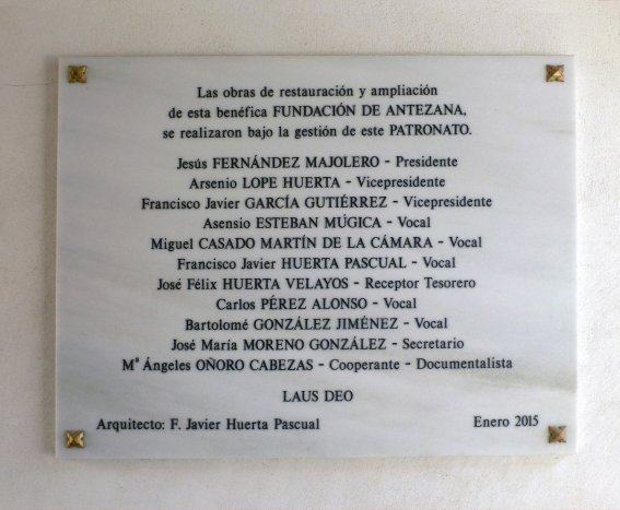 En enero de 2015 el Hospital de Antezana conmemoró la finalización de las obras de restauración de su sede con una lápida de mármol que fue colocada en el corredor que comunica al patio principal con el jardín, aunque posteriormente fue trasladada al jardín.
