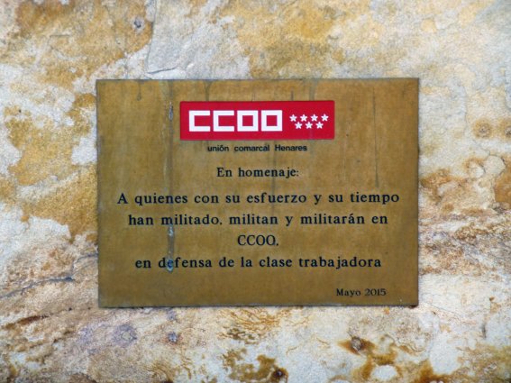 Lápida de Comisiones Obreras.