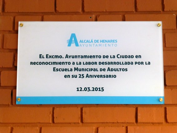 En marzo de 2015, en conmemoración del vigésimo quinto aniversario de su fundación, el Ayuntamiento descubrió una lápida -en realidad una lámina de metacrilato- en el porche de entrada de la Escuela Municipal de Adultos, situada en el edificio del antiguo colegio Historiador Portilla, en la confluencia de las calles Arcipreste de Hita y Portilla.