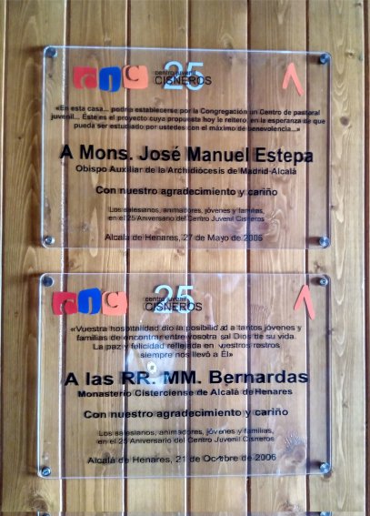En el patio de la ermita del Cristo de los Doctrinos hay también otras dos lápidas conmemorativas, aunque tan sólo una de ellas corresponde a este apartado. Está fechada en 1991 y conmemora la fundación en Alcalá del colegio de la Compañía de Jesús, precisamente en ese lugar. Encabezado por el anagrama de los jesuitas, su texto reza así: