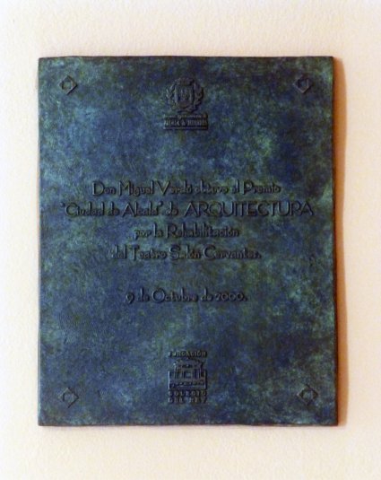 En reconocimiento a su labor le fue concedido a Miguel Verdú el premio Ciudad de Alcalá de Arquitectura en su edición del año 2000, descubriéndose una lápida de bronce en el vestíbulo del teatro en recuerdo del galardón.
