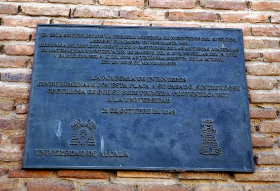 En octubre de 1999 se descubrió en la fachada del antiguo Colegio convento de San Basilio, situado al final de la calle de los Colegios, la lápida que recuerda la presencia en Alcalá, durante veinte años, de la Academia de Ingenieros, sin que la fecha de su erección coincidiera en esta ocasión con aniversario alguno de esta efeméride. La lápida es de bronce, y reza así:
