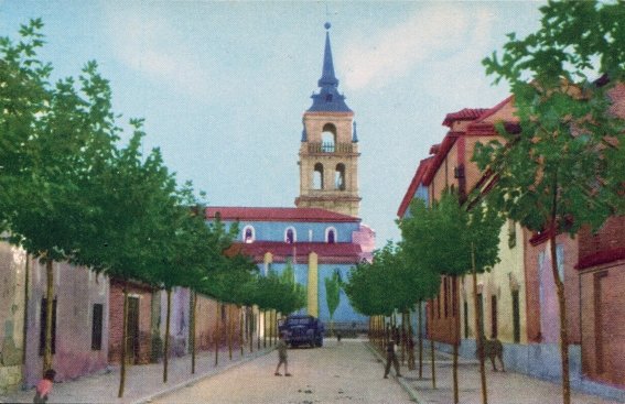Sin embargo, se dio la circunstancia curiosa de que, durante el período de transición de unas a otras, existió una efímera colección de postales coloreadas, una técnica que consistía en pintar a mano un original fotográfico en blanco y negro que luego se imprimía en color, un método que, como cabe suponer, acabaría desapareciendo tras el auge de la fotografía en color. Hasta donde yo sé se trató de un caso único dentro de las postales alcalaínas, y su vida debió de ser también bastante corta; de hecho esta colección es muy poco conocida, y sus ejemplares salen a la venta en internet a unos precios bastante elevados.