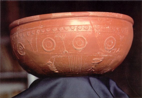 También por esa época fue cuando se iniciaron las excavaciones arqueológicas sistemáticas en el que fuera solar de la antigua ciudad romana de Complutum, después de que en los años setenta el crecimiento incontrolado de la ciudad engullera varios yacimientos de interés de los que tan sólo se pudieron salvar algunas colecciones de mosaicos. Este cuenco de barro cocido constituye uno de los hallazgos de entonces.