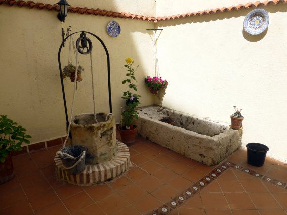 Gracias a la amabilidad de don Segundo de la Riva pude comprobar, veintiún años después de haber escrito el artículo, que la pila de piedra que temiera ver desaparecida -me satisface sobremanera que mis temores no tuvieran fundamento alguno, y reconozco satisfecho mi error- había sido cuidadosamente conservada y colocada en el patio del nuevo edificio que sustituyó a mi antigua casa natal. Y no sólo la pila sino también el brocal del pozo, tapiado en mi infancia y rescatado junto a su compañera en una muestra de sensibilidad y de respeto por nuestro patrimonio por desgracia no tan frecuente como hubiera sido de desear, lo que condenó a muchos pequeños y no tan pequeños tesoros complutenses a la destrucción y al olvido. Vaya aquí, como alcalaíno y como persona vinculada sentimentalmente a esta casa, mi agradecimiento por ello.
