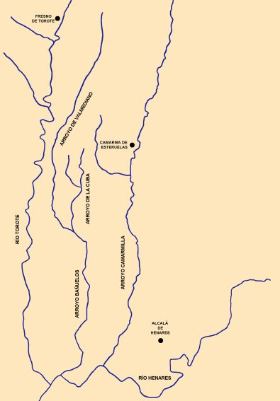 Quizá no todas las personas sepan que la red hidrográfica complutense no se limita tan sólo, además del Henares, a los arroyos Camarmilla y Torote. Existen algunos barrancos que bajan desde los cerros a desembocar en la margen izquierda del Henares, barrancos de muy escasa importancia y que veremos en su día. Pero existe también un pequeño arroyo que discurre entre los cauces de sus hermanos mayores, Torote y Camarmilla: el Bañuelos.
