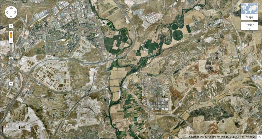 aprecia la confluencia del Henares (derecha) y el Jarama (izquierda) |
