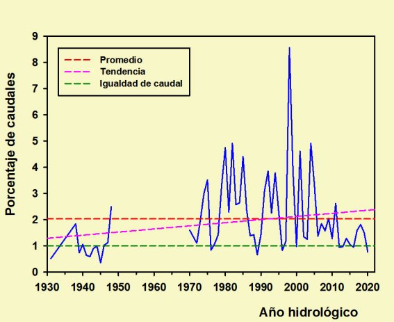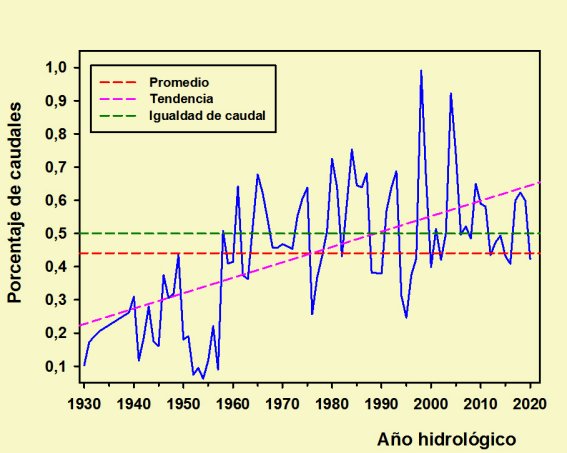 Sin embargo, tampoco contamos aquí con un criterio fijo; los ríos españoles son famosos por su irregularidad tanto a lo largo del año (con fuertes estiajes en verano) como de unos años a otros. Por tal motivo para establecer comparaciones de caudales no basta con dar un caudal instantáneo o uno medio anual, sino que hay que comparar las medidas de varios años.