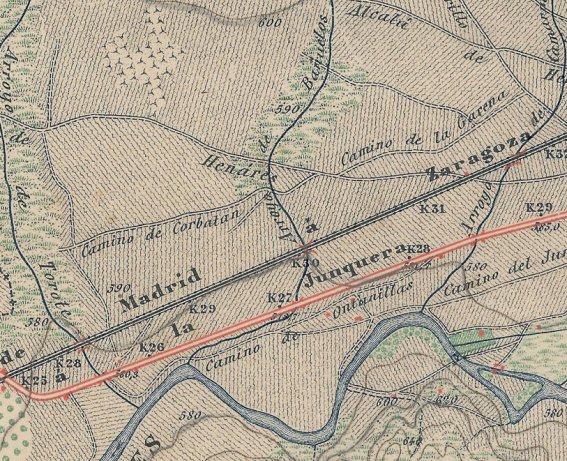 Sin embargo, en el mapa topográfico más antiguo de los disponibles en la página del Instituto Geográfico Nacional, el 1:50.000 de 1877, ya aparece con el mismo trazado que en el de 1977, por lo que el desvío habría tenido que ser en una fecha anterior a ésta. ¿Pero cuándo?