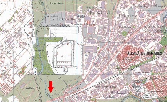 Y ahora es cuando todo se complica. En el plano de 1977 aparece dibujado pasando por delante de Ibelsa para finalmente desembocar en el recodo que forma el Henares, acercándose casi hasta la carretera, justo donde ahora se encuentra la depuradora. Por el contrario en el plano de 1982, más preciso al estar a mayor escala y algo más moderno, el trazado de su curso desaparece a la altura del camino, hoy asfaltado, que conducía a las edificaciones de la finca de Matillas.