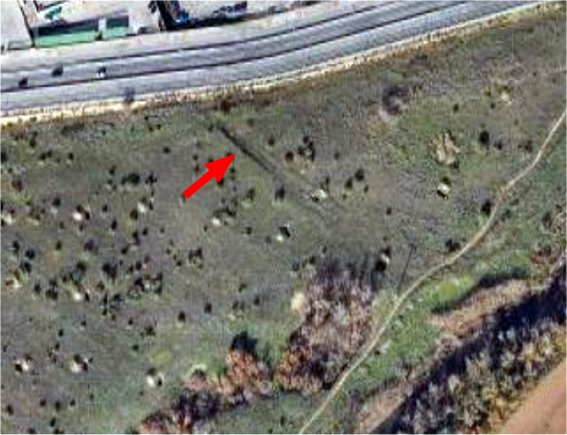 Finalmente, según las fotografías aéreas de Google Maps -por el momento no he tenido ocasión de inspeccionarlo personalmente-, se aprecia lo que parece ser una zanja rectilínea en lo que queda sin edificar de la antigua dehesa de Matillas, el triángulo formado por la M-300, el polígono industrial Matillas y el Henares. ¿Pudiera corresponder esta zanja de unos 70 metros de longitud, que arranca del margen de la M-300 para acabar a otros tantos del camino que discurre paralelo al río, del que le separan otros 40 metros más, al antiguo cauce del Bañuelos anterior al desvío de 1699? Porque si éste no pasaba por aquí, tampoco parece que se desviara demasiado.