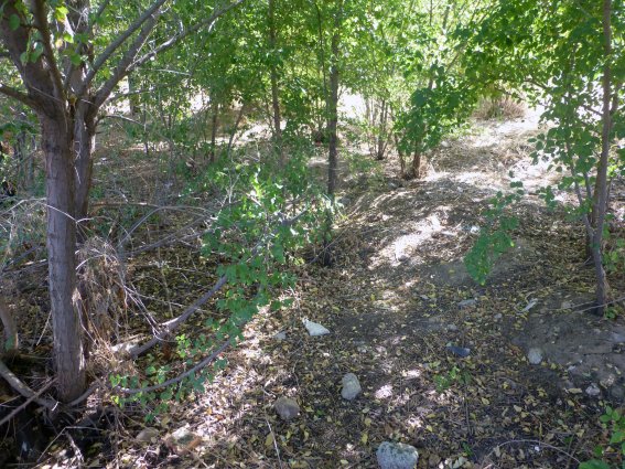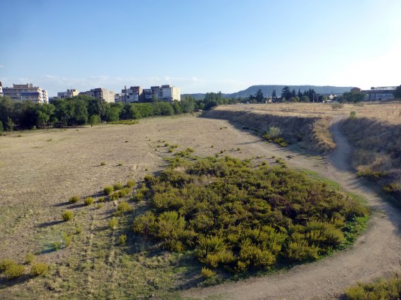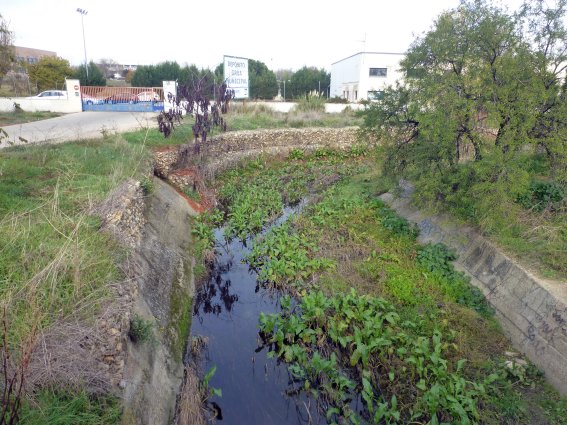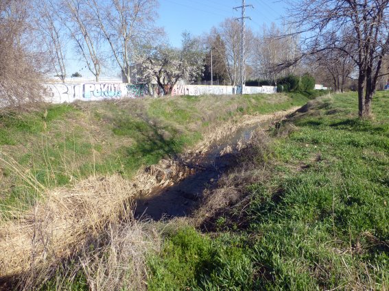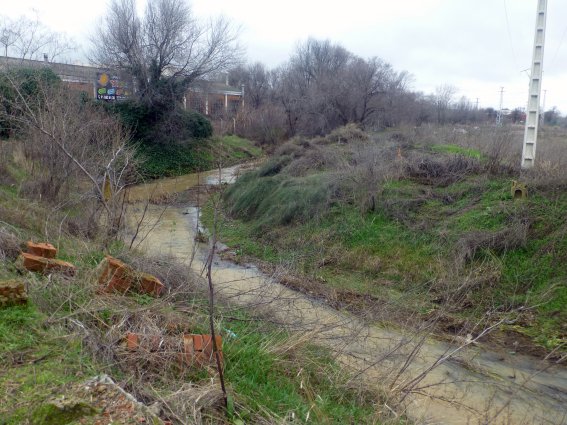 Al otro lado de la vía, a la altura aproximada de por donde debería haberla cruzado de no existir el desvío, se aprecia lo que parece ser un cauce seco entre la vía y la tapia trasera de la antigua fundición de Roca. Su recorrido es muy corto ya que sólo llega hasta la tapia de Roca y no resulta fácil discernir si se trata realmente del curso primitivo del arroyo, pero la hondonada que forma es perfectamente identificable y, a diferencia de los solares cercanos, está cubierta por una capa de vegetación espontánea que induce a pensar en la existencia de agua subterránea.