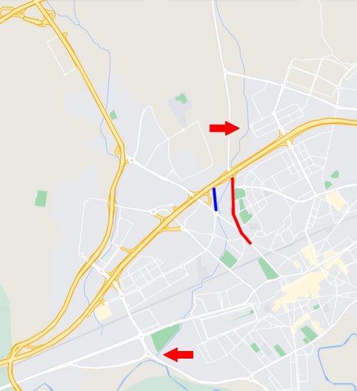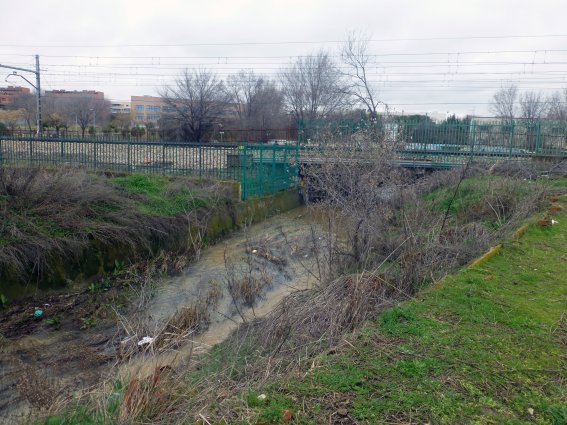 Además, en el caso de que sí lo hubieran desviado cabría esperar que hubiera quedado algún vestigio en el lugar en el que se iniciaba el nuevo cauce, algo que no han comunicado los arqueólogos o que, al menos, yo no conozco. Cierto es que la construcción de la autovía y del tramo de la carretera de Camarma que la cruza justo por donde discurre el arroyo se llevó por delante un buen puñado de metros de sus riberas justo en la zona donde tiene lugar el cambio de orientación, pero un estudio detenido de los mapas parece indicar que el punto de inflexión comienza en realidad algo antes, al final del parque de Espartales en las cercanías del estanque. Aparte de que tampoco es aquí donde el giro del cauce es mayor sino aguas abajo, ya en el barrio del Chorrillo y sobre todo a partir del cementerio.