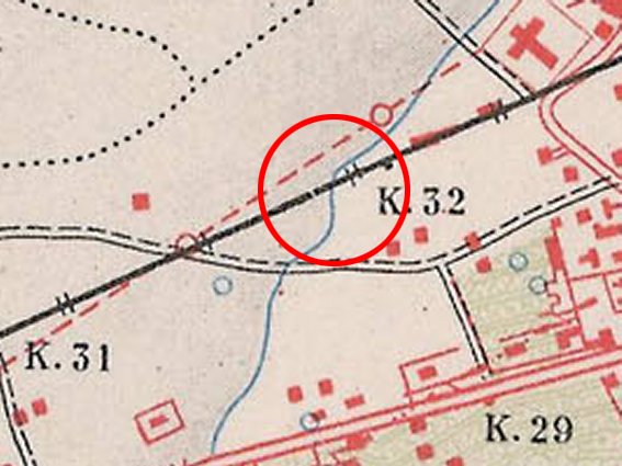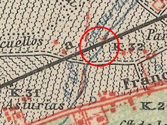 En los mapas topográficos antiguos (el primero data de 1877), en los cuales ya figura el trazado ferroviario, tampoco existe recodo alguno, apreciándose claramente que el cruce del Camarmilla se realizaba en diagonal sin que su cauce experimentara variaciones significativas.