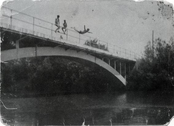 Las aguas del Henares se llevaron por delante dos puentes, el de la Alvega, situado en la Tabla Pintora, y el de Jerafín, frente al Juncal junto a la desembocadura del Camarmilla, ambos de uso privado. Del primero tenemos dos fotografías publicadas por Ramón del Olmo, una con el puente intacto -de reciente construcción, según el artículo- y otra donde se aprecian sus restos hundidos en el lecho del río. Aunque Ramón del Olmo afirma que lo arrastró la riada de 1951 posiblemente está equivocado, dado que la información del artículo es clara y no he encontrado referencias a una riada en ese año. El puente de la Alvega no fue reconstruido sustituyéndose por una barca, mientras el del Jerafín sí lo fue, algunas decenas de metros ribera abajo, en 1966. Del puente de la Alvega no queda el menor rastro a la vista excepto un estribo abandonado. Del puente antiguo del Jerafín sí se podían apreciar sus restos, quizás porque allí el Henares no está remansado y tiene menos profundidad, hace algunos años, pero desde que la construcción de la variante de la M-300, a finales de la década de 1990, bloqueó los accesos a esta zona del río no he podido comprobar si siguen estando allí.