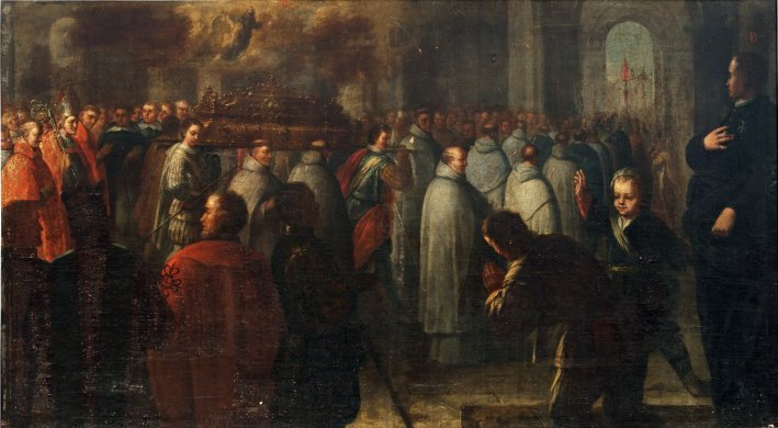 Tras la curación del príncipe, en agradecimiento por el milagro Felipe II promovió unas obras de ampliación de su capilla, a la que se trasladó su cuerpo en solemne procesión en 1592, atribuyéndosele el milagro de la aparición de su alma durante la traslación de la reliquia.