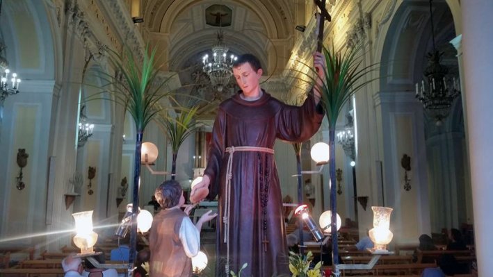 Canicatti es una población de 35.000 habitantes situada al sur de Sicilia, en la provincia de Agrigento. Aunque su iglesia principal está consagrada a san Pancracio, el protettore de la ciudad -supongo que se podrá traducir como patrón- es san Diego, que cuenta con una parroquia propia. Según un artículo publicado en internet firmado por Diego Lodato, el culto a san Diego en Canicatti surgió inmediatamente de su canonización en 1588, promovido probablemente por los monjes franciscanos que habitaban en el convento del Espíritu Santo. Conviene no olvidar que en esa época Sicilia pertenecía a la corona española, lo que sin duda favoreció la implantación de su culto. Más adelante, ya en el siglo XVII, se asentaría una cofradía de san Diego en la iglesia de San Sebastián, la cual sacaba en procesión su imagen. La devoción a san Diego fue creciendo, sobre todo a partir del terremoto de 1693, al librarse Canicatti de la destrucción que asoló a otras poblaciones vecinas.
