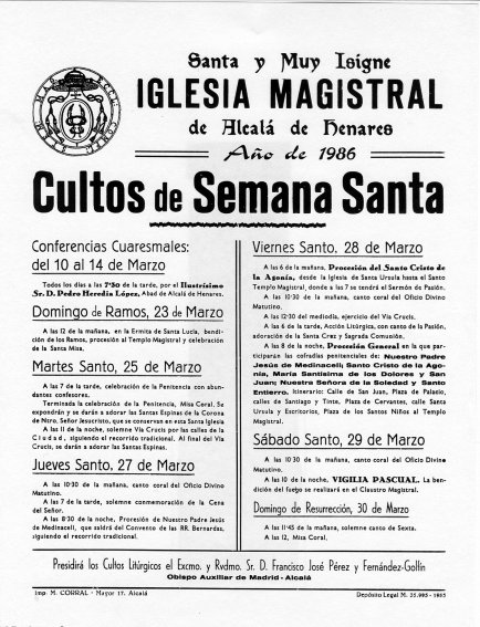 Un año más ha llegado la Semana Santa, esta tradición cultural tan arraigada en nuestro país y que, sin embargo, nunca ha pasado de ser una discreta actividad en la historia reciente de nuestra ciudad, no obstante su elevada densidad demográfica. ¿Las razones? Pues varias, a buen seguro: El vendaval de la guerra civil que, al igual que en otras muchas facetas, arrasó el patrimonio eclesiástico alcalaíno; la tradicional y no por tópica menos real apatía complutense y, como consecuencia del desarrollismo salvaje de los años sesenta, el enorme desarraigo de los grandes núcleos de emigración que conforman una parte mayoritaria de la población de Alcalá.