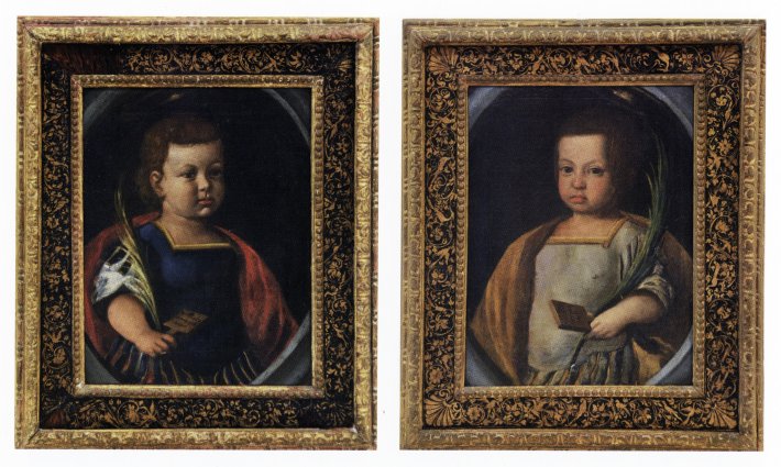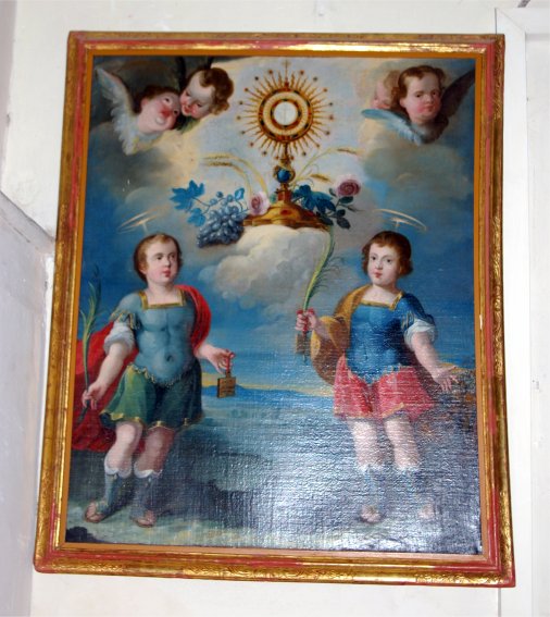 En la cripta de los Santos Niños se conserva un relicario en el que aparecen pintados ambos mártires sobre madera o cartón. Son de tamaño reducido -unos doce o catorce centímetros de altura- y su autoría es anónima, aunque por su factura cabe suponer que puedan proceder de la época barroca. En algunos aspectos tales como los ropajes, los nimbos y el fondo, aunque no así en los rostros, de un barroco más tardío, recuerdan un tanto al cuadro que se conserva en el Hospital de Antezana que aparece reproducido más adelante en este mismo artículo.
