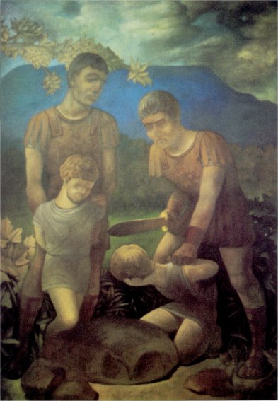 El siguiente cuadro representa, en un estilo moderno que recuerda un tanto al de Vázquez Díaz, el martirio de los Santos Niños. Es obra de José María Laredo, y se encuentra en el Palacio Arzobispal, concretamente en la sala de los obispos complutenses.