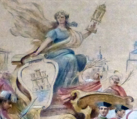 Hemos de recordar por último la obra pictórica del artista alcalaíno Félix Yuste dedicada a los patronos complutenses. En sentido estricto no conozco ningún cuadro de esta temática, a excepción de una acuarela que fue posteriormente reproducida en forma de estampa y he recogido en el artículo dedicado a los grabados alcalaínos. Sí salieron de sus pinceles dos lienzos en los que aparecen los patronos de la ciudad, si bien en ninguno de ellos alcanzan el protagonismo.