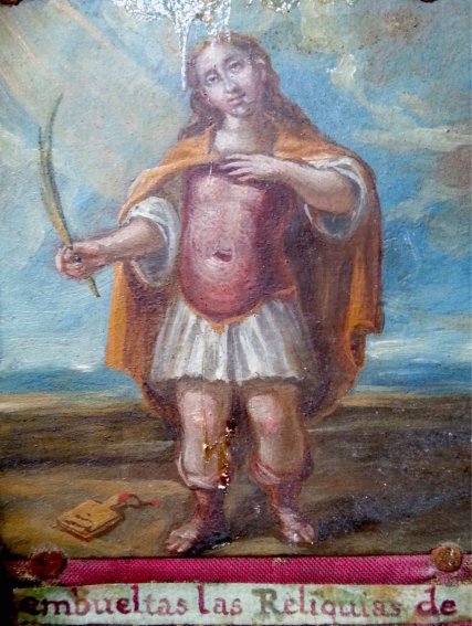 Yo recuerdo haberlos visto durante mucho tiempo en la cripta, flanqueando por ambos lados a la piedra martirial, y con toda probabilidad debieron de ser pintados para ser colocados en ese lugar ya que su poco habitual formato, apaisado y con el borde superior convexo, se adaptaba perfectamente al hueco de las dos hornacinas allí existentes, actualmente ocupadas por una colección de relicarios. Hace algunos años fueron retirados de la cripta y colocados en el muro trasero de la iglesia, a ambos lados del portón de entrada, pero tras la última restauración desaparecieron del templo sin que haya conseguido saber lo que sucedió con ellos.