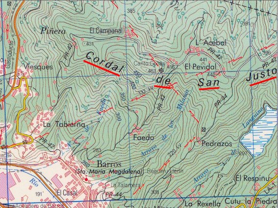 cordal de San Justo está subrayado marcado con líneas