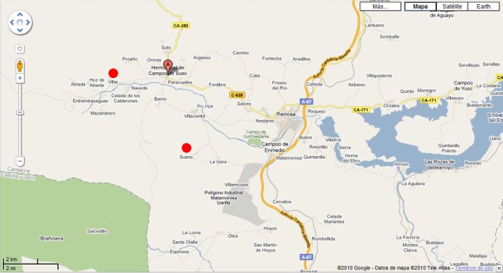 Maps representando la comarca del Campoo. Marcados con un punto rojo, Suano