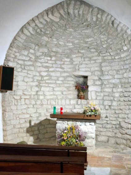 Vista interior del ábside e imágenes de los Santos Niños. Fotografías tomadas de www.parroquiesterbrugent.cat |