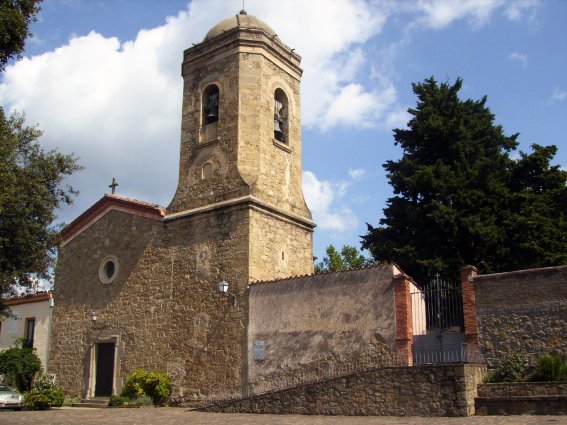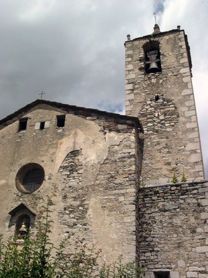 La iglesia actual, dedicada a san Bartolomé, está ubicada en el mismo lugar que ocupaba la antigua capilla de Sant Just, construida fuera del recinto del castillo después de los terremotos de 1427. Formaba parte de un monasterio desaparecido. Consta como parroquia desde el año 1060. En el año 1108 fue cedida por Ermesenda, vizcondesa de Bas y el Obispo de Gerona Bernat Humbert.