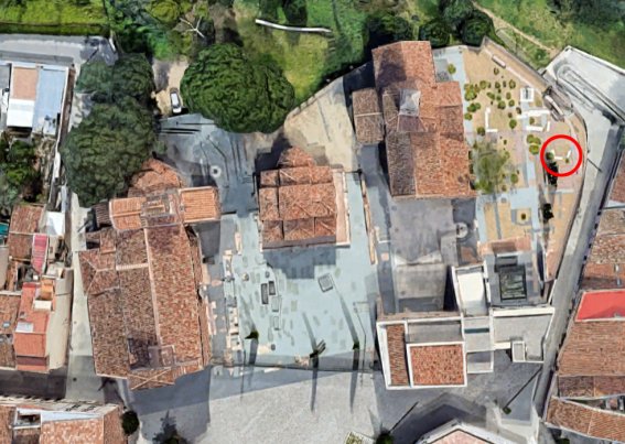 aérea de Google Maps. El círculo rojo indica la ubicación