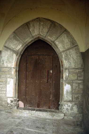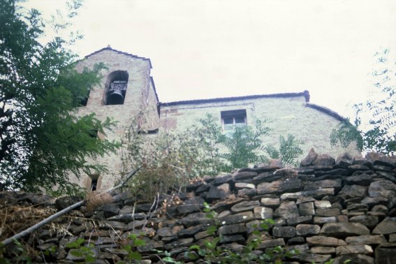 Vayamos a los datos que pude recabar personalmente. La iglesia es de pequeñas dimensiones y no posee un estilo arquitectónico definido (es lo que en la ficha llaman estilo popular), lo que es probable que se deba a la aludida reconstrucción de los siglos XVII y XVIII, presumiblemente poco respetuosa con las trazas originales del edificio. Y aunque no es mi intención rebatir la opinión de los expertos, lo cierto es que su valor arquitectónico a mí me pareció, al menos a simple vista, bastante limitado tal como ha llegado hasta nosotros. Cuenta la iglesia con una torre campanario bastante maciza, con tejado a dos aguas, en la cual, debajo del cuerpo de campanas, se abre una ventana de aspecto gótico, probablemente superviviente del templo original.