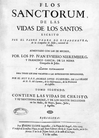 A los que ya he recogido en esta sección se suma ahora el texto correspondiente a Flos Sanctorum de las vidas de los santos, escrito por el jesuita Pedro de Ribadeneyra en torno a 1600 aunque sus orígenes se remontan hasta la Leyenda Áurea de Santiago de la Vorágine, datada en la segunda mitad del siglo XIII. El Flos Sanctorum alcanzó una gran popularidad en el barroco postridentino, siendo reeditado y ampliado en varias ocasiones hasta finales del siglo XVIII.