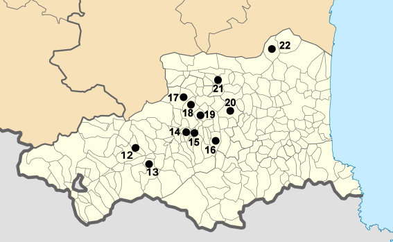 Tal como acabo de comentar son once las referencias a los Santos Niños que tengo localizadas en este departamento, casi un tercio de las existentes en el vecino país, y un número importante para un territorio de poco más de cuatro mil kilómetros cuadrados ligeramente menor que la provincia de Pontevedra. Esto en principio no era de extrañar, dado que las regiones pirenaicas de Aragón y Cataluña fueron un importante foco de culto a los mártires complutenses mientras por el otro lado Narbona se convirtió en otro de relevancia similar.