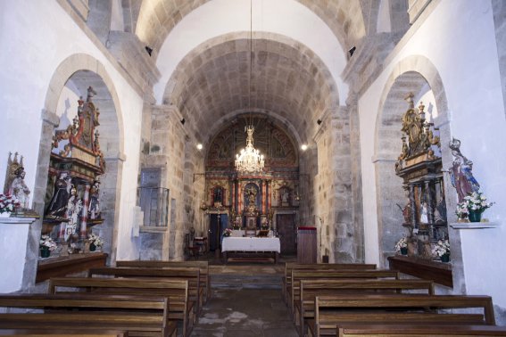 En el interior de la iglesia existen tres retablos, el mayor en el presbiterio y dos laterales. En uno de estos últimos, concretamente en el del lado de la Epístola (el derecho), se encuentra la imagen de uno de los titulares del templo, posiblemente san Justo. Falta aparentemente la de su hermano, ya que ésta no aparece en ninguno de los tres retablos, ni tampoco en una peana, tal como se puede comprobar en un vídeo publicado por la Xunta de Galicia.