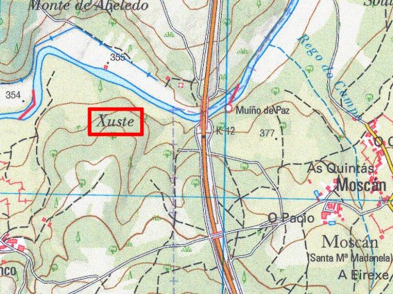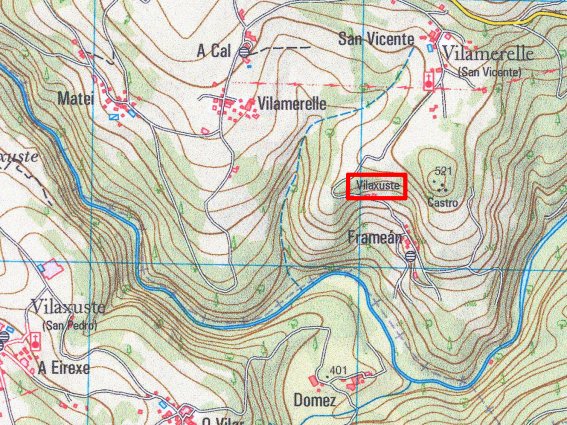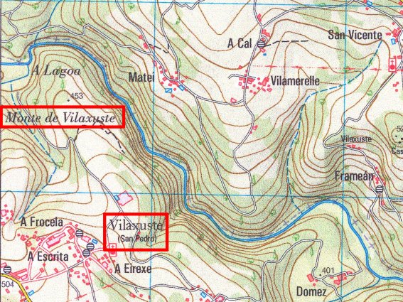 el Monte de Vilaxuste están remarcados en rojo