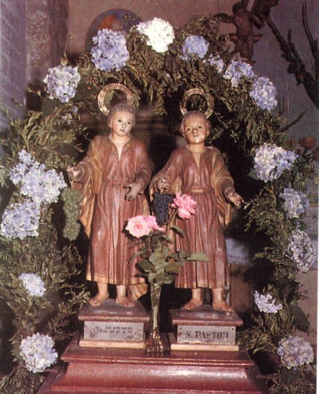 Lo que no he podido encontrar han sido fotografías ni del interior de la iglesia, ni de las imágenes de los santos titulares que a buen seguro tienen que existir, puesto que su festividad se celebra todos los años.