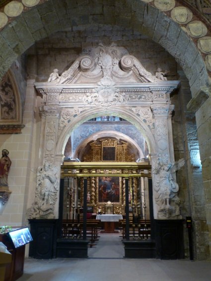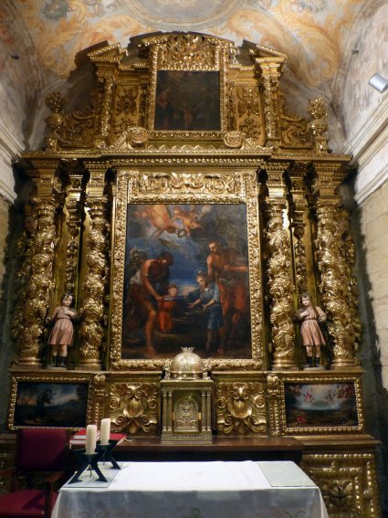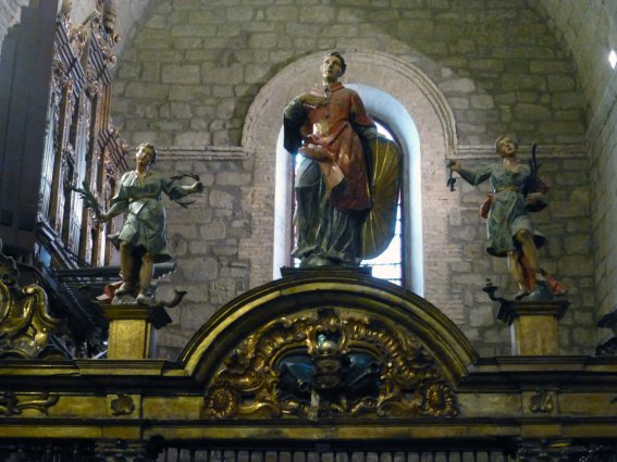 Terminado nuestro recorrido por San Pedro el Viejo hemos de ir ahora a la Catedral donde, según la página de la diócesis de Huesca, existen unas imágenes de los Santos Niños pertenecientes al retablo de la capilla de San Joaquín, la segunda del lado de la Epístola (el derecho) a partir del transepto: