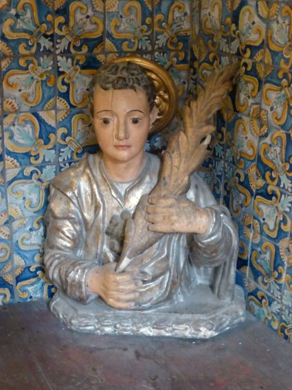La iconografía de los mártires complutenses se completa, en lo que a la capilla se refiere, con dos imágenes de pequeño tamaño colocadas en los intercolumnios de ambos lados.
