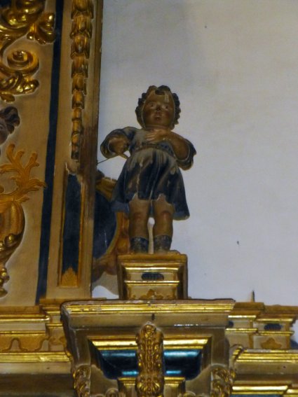 Las imágenes, difíciles de identificar a simple vista por hallarse situadas en la parte alta del retablo, presentan una tipología típicamente barroca acorde con la época en la que fueron realizadas.