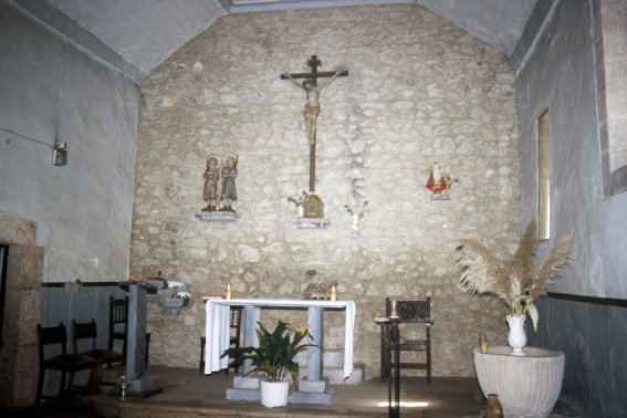 Las imágenes actuales de los Santos Niños son similares a las de otras muchas iglesias que, a lo largo de la geografía española, hubieron de ser repuestas en la posguerra, de serie y con toda probabilidad procedentes de los talleres de Olot. Cuando yo visité La Riera, hace casi 30 años, tan sólo había un crucifijo en la parte central, flanqueado por los Santos Niños y una pequeña imagen de la Virgen de Covadonga. Según he podido comprobar en fotografías recientes la distribución ha variado un poco, ya que ahora son los Santos Niños los que ocupan el lugar central, en vez del crucifijo, sobre un nuevo sagrario, y también ha cambiado la mesa del altar, pero por lo demás el aspecto interior del templo es muy similar al de entonces.