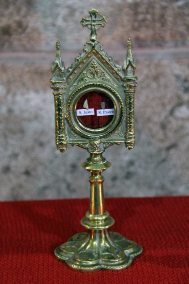Según me dijo tenía la intención de potenciarlo en la parroquia, incluyendo la adquisición de una imagen de san Vidal, y vaya si lo consiguió... gracias a una nueva llamada suya supe que gracias a la mediación del arzobispo de Oviedo, monseñor Jesús Sanz Montes, que anteriormente había sido obispo de Huesca, habían conseguido la cesión de unas pequeñas reliquias de los dos hermanos procedentes de las que se custodian en el templo oscense de San Pedro el Viejo. Iniciadas las gestiones durante el verano de 2013, éstas recibieron el visto bueno del obispo de Huesca, monseñor Julián Ruiz Martorell, procediéndose a la extracción de las mismas conforme a la normativa establecida por la Iglesia Católica para garantizar su autenticidad, con la intervención de un médico forense y la redacción de un certificado por parte del obispo.