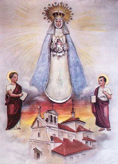 Volvamos a la iglesia del convento de Maravillas, que había quedado vacía tras la expulsión de la comunidad religiosa. En un principio el templo fue convertido en Rectoría, pero como ya ha sido comentado en 1891 fue trasladada aquí la parroquia de los Santos Justo y Pastor (o de San Justo) a raíz de la conversión de su templo en sede de la Nunciatura. Puesto que las carmelitas se habían llevado con ellas la imagen de la Virgen de las Maravillas, muy venerada en el barrio, se procedió a la construcción de una copia de la misma, lo que explica que esta Virgen comparta desde 1969 la titularidad de la parroquia con nuestros patronos.