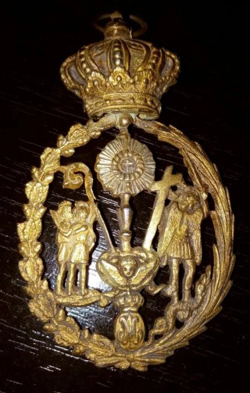Anverso y reverso de una medalla con el escudo de la Sacramental |