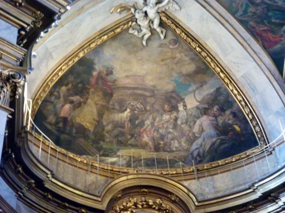 Por razones de espacio y porque cualquier persona interesada puede visitar la iglesia en Madrid (recuerdo que es la actual Basílica Pontificia de San Miguel), no voy a entrar en detalles acerca de sus elementos artísticos, aunque sí es conveniente reseñar que en la cúpula de la nave central existe una pintura alusiva a los Santos Niños, realizada por Bartolomé Rusca, y en la cúpula del crucero otros motivos alusivos al martirio de estos mártires pintados por los hermanos Antonio, Luis y Alejandro González Velázquez.