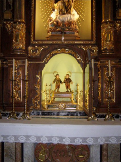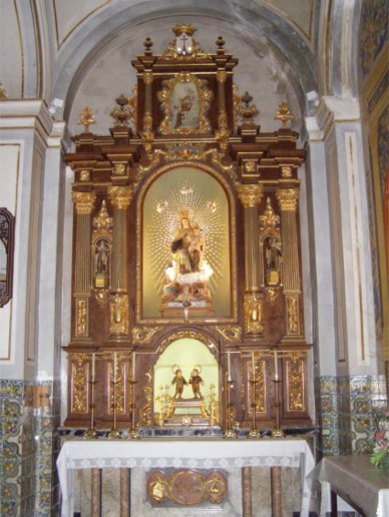 Altar de la Virgen del Carmen. Vista general y detalle de las imágenes de los Santos Niños |
